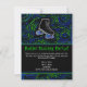 festa de aniversário de patinação divertida e festiva, o convite de festas skate apresenta skate de roletes pretos com círculos verdes e azuis em neon e fundo cintilante. Excelente para uma festa de patinação, equipe ou aniversário de qualquer idade, rapazes ou raparigas. Adicione o nome do convidado de honra, os detalhes do evento e o título da festa na frente, e Personalize todo o texto do seu partido! Preto e azul com ênfase verde brilhante design.