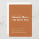 Se você ama neutrais, este simples convite de estilo é certo para você. O convite apresenta um design elegante, com um fundo laranja macio e queimado. No centro, os detalhes do partido são lindamente escritos em um texto branco exuberando um ar de sofisticação. O texto engraçado "o que flutuar no seu barco de molho" dará aos seus hóspedes um riso antes mesmo que eles apareçam. Bem-vindos convidados à sua festa de janto de Ação de Graças em estilo. A cor e o texto em segundo plano são editáveis.