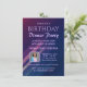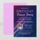 Convite de festas de janto de aniversário personalizado com fundo de gradiente roxo e azul. Apresenta linhas totalmente editáveis para personalizar para festa de aniversário ou qualquer ocasião, incluindo fotos de convidado de honra, detalhes da festa, RSVP e mais informações. Disponível para download instantâneo e impressão.