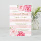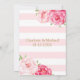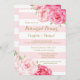O ensaio personalizado janta convites de festas em um padrão de listras cor-de-rosa claro e cor-de-rosa claro, com flores de aquarela vintage e texto dourado.
