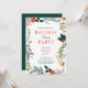 Convite para o tema Elegant Holiday com um quadro de design floral à sua volta. Este design festivo é perfeito para celebrar o Natal e a Festa de Férias com a família e amigos. Use para jantar, almoçar, almoçar ou almoçar.