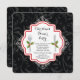 convite de festas de janto de Natal com um local formal com um local de fixação de local colocado sobre um fundo de cor damasco preta com folhas ocas verdes e bagas vermelhas. Sacudir que nossa festa de janto convide para encontrar uma resposta para um toque especial extra.