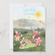 O convite de aniversário desta criança engraçada e fofa apresenta uma cena piquenique alegre cercada pela natureza, ar fresco e céus ensolarados. Vemos crianças brincando, uma pipa voando, um balão, um bolo, uma guitarra, um cesto de piquenique e um passarinho sentados em um balão. Este cartão fofo certamente agradará a todos que o recebem. Personalizar para torná-lo seu próprio:) Este item faz parte de um conjunto de coleções com o mesmo tema para meninos e meninas.