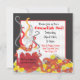 Super divertido convite de festas de lagostas com um excelente do Louisiana. Pote vermelho quente de lagosta com milho no berço, batatas e limão sentam-se num jornal com um padrão de harlequin. Ilustração desenhada à mão por McBooboo.