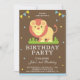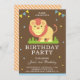 Incomode seus convidados com esta festa de aniversário fofa, convidando com um adorável leão com elementos vibrantes sobre um fundo marrom. Basta adicionar os detalhes do seu evento neste modelo fácil de usar para torná-lo um convite de tipo único. Sacudir a placa para revelar um padrão de cor de pêssego e listras brancas na parte traseira da placa.