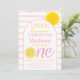 O convite apresenta elementos bonitos, um limão, sol e matizes cor-de-rosa. Personalize o texto editável e use-o para uma primeira comemoração de aniversário.