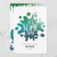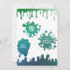 Convite de festas azul, verde e turquesa do arco-íris de lodo azul 3D. Divertido, brilhante convite de festas moderno. Parte de uma coleção correspondente.