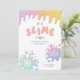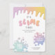 Convite de festas do arco-íris de lodo gooey. Divertido, brilhante convite de festas moderno. Parte de uma coleção correspondente.