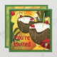 Um design gráfico do Partido Luau Havaiano sobre comidas tópicas e bebidas de coco pelo artista/designer Charmaine Paulson a convite. O convite tem modelos de texto para sua personalização. ©2012