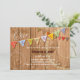Estamenhas bonitos, coloridas + a textura de madeira da grão do falso rústico projetou em convites novos feitos sob encomenda da festa em casa. Personalize o moderno & na moda convida para seu PARTIDO NOVO da CASA do PAÍS! Sinta livre editar também os tamanhos, as pias batismais & as cores do texto.