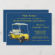 Você pode personalizar todo o texto deste convite de festas de aposentadoria de golfe temido. O design apresenta um carrinho de golfe preto e amarelo sobre um fundo azul marinho. A cor do fundo azul também pode ser alterada. Altere o texto para usá-lo para um convite de aniversário, se desejar.