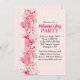 O sotaque floral moderno se limita ao fundo da bolinhas da rosa claro para um Convite de festas de Dia de os namorados divertido novo com cartão correspondente de volta. Todo o texto está pronto para você personalizar para um Janto, Cocktails ou outro tema. Um belo convite para uma celebração especial de Dia de os namorados.