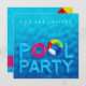Modelo de convite personalizável para piscina infantil ou piscina de coquetel de verão com água piscina azul nadando e anéis de borracha infláveis coloridos. Personalize-o com seu próprio texto ou personalize-o ainda mais se precisar ajustar o layout ou escolher um tamanho de convite diferente.