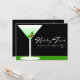 Agradeça aos amigos e à família enviando estes convites bonito. Uma boa bebida mista, misturar, comer, dançar e rir é o que uma festa é. Um copo de vinho branco com um dentro de bebida minúscula com bagas doces parece delicioso. O fundo preto e verde dá a sensação de um evento noturno. Todo o texto na frente e no verso deste convite pode ser personalizado.