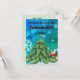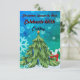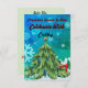 Lindos fundos azuis e verdes com flocos de neve com uma árvore de Natal simples com uma estrela ouro e ornamentos azuis, e um pequeno presente espiando por trás. O fundo tem um fundo sólido com um pequeno gráfico de Papais noeis no canto inferior. Personalizar com o nome da pessoa/família que detém a parte. A parte de trás tem locais para adicionar o tema da festa [ou seja, Comidas e coquetéis de dedos] e [Traga um Papai noel secreto com menos de 10 dólares.], endereço, data e hora. Entre em contato com este designer se precisar de assistência para personalização.
