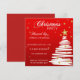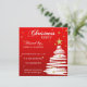 Cartão de Festa de Natal Vermelho branco e DouradoConvite para Festa de Natal moderno e elegante com árvore de Natal, flocos de ouro e neve.