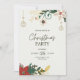Cartão de convite de festas jante de Natal moderno, com ilustração aquosa de botânicos de inverno - laranjas, maletas, ramos de pinheiros, etc.