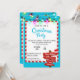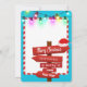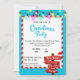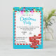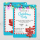 Este é um brilhante e alegre convite de festas de Natal. O fundo é um azul vibrante, e no topo, luzes coloridas de Natal são penduradas, acrescentando um brilho festivo. A fronteira do convite tem listras vermelhas e brancas de cana doce, melhorando o espírito de feriado. No centro, grandes cartas azuis dizem, "Junte-se a nós para uma festa de Natal", fazer claro que isto é um convite para uma reunião divertida e sazonal. Abaixo, há uma mensagem de boas-vindas: "Junte-se a nós para uma noite divertida e festiva cheia de guloseimas de férias, companhia de excelentes e boa alegria! Mal podemos esperar para te ver!" Os detalhes do evento são apresentados de forma clara, com a parte a acontecer na data e local escolhidos. Na parte inferior, incentiva os convidados a RSVP até a data escolhida. O canto inferior direito também apresenta um belo e decorativo letreiro com texto como "Feliz Natal", "Melhores Desejos" e "Feliz ano novo", enfeitado com um pequeno chapéu de Papai Noel, acrescentando mais charme de férias ao design.