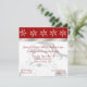 Convite para festas divertidas, com uma ilustração pálida de Santa Cláusula na área de texto branco de fundo. Um cabeçalho vermelho com flocos de neve brancos, no topo, com uma borda de fita prateada. Personalize o texto de acordo com as necessidades do seu partido.
