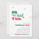 Um convite de festas de Natal divertido que apresenta um design de tipografia em tons vermelho-claros, verde e dourados e uma fonte retrô. Este convite colorido tem um reverso riscado, é fácil de editar e é perfeito para uma festa de feriado. Par com qualquer coisa da coleção ROXY para um olhar coeso.