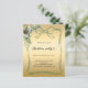Para uma festa de Natal com familiares e amigos. Decorado com um arco verde simples desenhado à mão, verde e um pinho. Personalize e adicione os detalhes. Festa de Natal de coração. Fundo de gradiente de ouro falso. 1 folha = 1 convite impresso de borda a borda.