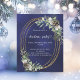 Um fundo azul marinho, incolor, decorado com cones, bagas brancas e verde. Uma falsa estrutura oval dourada. Personalize e adicione os detalhes. 1 folha = 1 convite impresso de borda a borda.