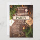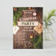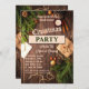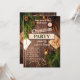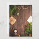 Sotaque de madeira com convite de festas da empresa de verde de Natal. Apresenta imagens de abetos verdes, cones de pinheiro, presente e envelope. Totalmente editável para os detalhes de sua empresa.