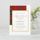 Convite de festas de Natal clássico da xadrez. O partido de Natal minimalista convida com xadrez de tartã vermelha com sotaques de ouro e cheio sangrando nas costas. Elegante, design simples para uma reunião festiva de férias. O download digital instantâneo também está disponível para sua conveniência. Mais papéis de carta de Natal e suprimentos podem ser encontrados na Elegante Xadrez Coleção Moderna de Natal na Bela Abstrato.