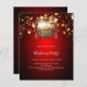 Um convite para uma festa de Natal. Um fundo de gradiente vermelho. Decorado com uma grande safra dourada que parece bálsamo e estrelas ouros. Personalize e adicione os detalhes. Texto branco. 1 folha = 1 convite impresso de borda a borda.