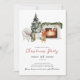 Convite de festas de Natal em aquarela com lareira, árvore de Natal, cadeira e cão. Personalize seus convites de Natal com os detalhes de sua festa.