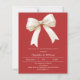 Para uma festa de Natal com familiares e amigos. Um cartão elegante, simples, decorado com um arco de cor creme grande. fundo vermelho. Personalize e adicione os detalhes. 1 folha = 1 convite impresso de borda a borda.