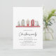 Belas Casas Convite de festas de Natal. O Convite de festas Feliz de Natal em um estilo moderno com casas bonitinhas de cor vermelha e verde. Uma foto.