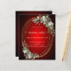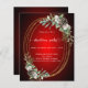 Um fundo de gradiente vermelho. Uma estrutura de ouro falsa, decorada com cones, berros brancos e verde-pinheiro. Personalize e adicione os detalhes. Texto branco. 1 folha = 1 convite impresso de borda a borda.