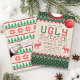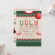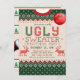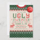 Personalize este Convite de festas de Natal engraçado e bonito, vermelho, verde, alto e branco, Ugly Sweater, de dois lados, com sotaques tipográficos tricotados e um botão de afixação que diz, "Prêmio pelo melhor do PIOR"! Personalize facilmente a redação para torná-la sua e tornar a festa de férias deste ano uma festa memorável! INA Design carinhosamente criada por Fig e Lily Studios.