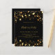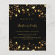 Um convite para uma festa de Natal. Fundo preto clássico. Decorado com estrelas ouros. Personalize e adicione os detalhes. 1 folha = 1 convite impresso de borda a borda.