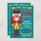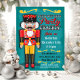 Super bonito e fofo convite de festas Nutcracker para o Natal. Featurea um grande pregador, fontes divertidas e um fundo escuro e rústico de chá. Excelente para uma casa aberta, aniversário ou qualquer evento para a temporada de Férias. Ilustração desenhada à mão por McBooboos