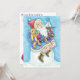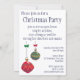 Fácil de personalizar o convite de festas de Natal. Vintage ilustração fofa design de Natal Feliz apresentando um Papai Noel alegre sentado em uma bola de neve segurando brinquedos enquanto está nevando. Os papais noeis estão segurando um veleiro, tambor, ursinho de pelúcia e cana doce, todos símbolos tradicionais do Natal. Felizes Feriados e Saudações da Estação!