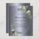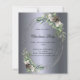 Um fundo com aspecto fino de prata decorado com cones, bagas brancas e verde. Um quadro oval. Personalize e adicione os detalhes. 1 folha = 1 convite impresso de borda a borda.