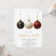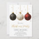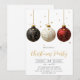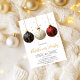 Convide seus convidados em estilo com este elegante convite de festas de Natal com três ornamentos de ornamentado em preto, branco e vermelho com detalhes delicados de ouro. Acentuado com estrelas cintilantes e a caligrafia dourada, esse design de eterno dá o tom perfeito para reuniões festivas. Ideal para jantas de férias, festas de cocktail, eventos de Natal de escritório e comemorações sazonais. Personalize facilmente com os detalhes do evento para criar um convite de férias polido e sofisticado.