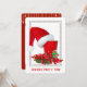 O chapéu de papai noel na xícara de festa vermelha com gengibre e Convite de festas de Natal de fita.