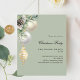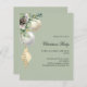 Para uma festa de Natal com familiares e amigos. Um elegante e moderno fundo verde sábio. Decorado com bolhas de ouro e branco e um pouco de verde e um pinho. Personalize e adicione os detalhes. 1 folha = 1 convite impresso de borda a borda.