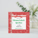 Convidado de Natal festivo que funcionaria bem para casas abertas da família, festas corporativas ou outros eventos de férias. Texto formatado na frente e no verso. Basta editar seus próprios detalhes no editor fácil do zazzle. Impresso em um design de fundo vermelho e holly com sotaques de fita e floco de neve simulados digitalmente.