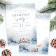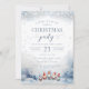 Convite sofisticado de aquarela para uma festa de Natal com gnomos adoráveis e um tema de neve de inverno.