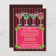 Este é um cartão de convite para férias brilhante e festivo com vinho fofo e copos de martini que têm canas doces e cola. Muito divertido para a época de Natal.