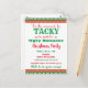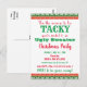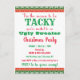 Cartão-postal de Convite de festas de Natal Suado Feio. Um suéter de Natal, de malha vermelha e verde, com um modelo fácil de usar para personalizar o texto. Um excelente convite para que a festa de Natal da Ugly Sweater comece bem. Copyright da TjsGarden