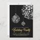 Comemore a temporada com este convite de festas de Férias. Este design apresenta lindos ornamentos de bola de neve com um tema ouro e preto. Esta modelo de design será perfeita para uma festa de Natal, festa de Natal, festa corporativa ou festa de cocktail.