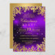 Convite de festas de Natal roxo e dourado. Coroa de ouro elegante e diamantes com fundo festivo de xímeas roxas. Nota: Todas as imagens planas!