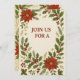 Celebrar os feriados com esta elegante Convite de festas de Natal de dois lados. Apresentando um fundo de pergaminho creme adornado com poinsetos vermelhos festivos, holly, evergreen sprigs e sotaques de ouro, a frente destaca seus detalhes de evento enquanto o dorso decorativo correspondente completa o design. Perfeito para festas de Natal, reuniões sazonais e festas de férias de inverno.