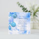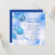 Aqui está um convite de festa de Natal que é bonito, mas não é alegre ou gazinho. Funciona bem para festas de Natal corporativas ou pessoais. É predominantemente feito em tons de azul, com um toque de verde azul para interesse. O fundo é um belo design de floco de neve abstrato, com bolbos azuis de árvore de Natal e uma imagem de fita azul e verde ondulada no lado esquerdo. Seu texto personalizado está em cinzas azuis no lado direito. A parte de trás do convite é azul escuro consistente. Elegante e facilmente adaptado a qualquer evento de férias.