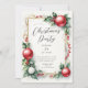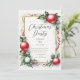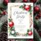 Este elegante convite de festas de Natal apresenta um design festivo enfeitado com folhas sagradas vibrantes e bagas vermelhas brilhantes com ornamentos de bola de Natal vermelha, capturando o espírito da época das festas. Perfeito para convidar amigos e família para a sua celebração, o convite combina elementos tradicionais com um toque moderno, garantindo que ele se destaca.